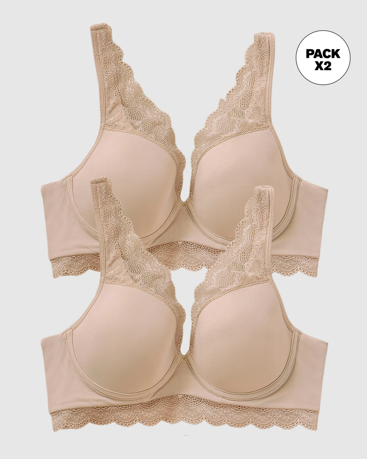 2-Pack Deep Coverage Soft Lightly-Lined Lace Underwire Bras
