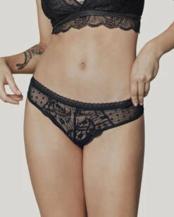 Eco-Friendly Thong Knicker With Tulle Details And Ultra-Flat Waistband