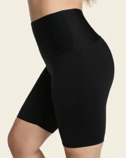 - A one-piece swimsuit with slimming compression in the lower tummy.