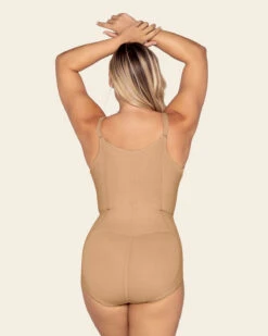 This firm compression body shaper is ideal for both post-surgical and everyday wear as it gives you back support. It is made of our signature PowerSlim®® ®® firm compression fabric that sculpts the entire torso with the slimming effect on the upper, medium and lower abdomen, waist and back. This shaper has an open-bust design so that you can wear your favourite bra with it. The inner layer of DuraFit®® ®® offers a soft feel for all-day comfort. It features 3-level adjustable diagonal front hook-and-eye closure for a perfect fit plus hooks at the top for extra support, preventing it from unhooking throughout the day. Its state-of-the-art wide seamless straps guarantee you all the support you need. A cotton-lined hook-and-eye gusset offers convenient wear. A special, light fabric in the bottom combined with a ruched seam prevents your butt from flattening giving it a rounded shape.