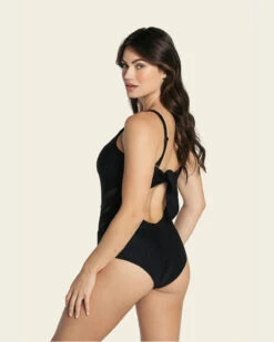 Our new favorite monokini for the beach; this flattering, light lower tummy control swimsuit is made of a unique shiny fabric that will make you glow under the sun! It has removable cups that offer a light rounding effect, and you can remove them for a more natural look. Its elastic underbust band offers extra support.